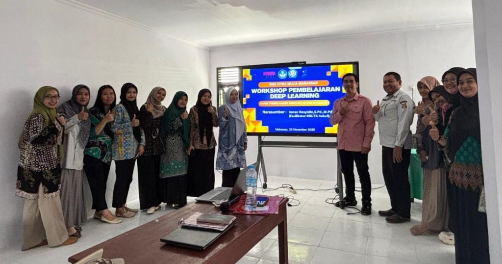 Mengingat Pentingnya penerapan pembelajaran mendalam bagi guru dikelas maka guru SMP dan SMA Citra Mulia Makassar mengikut Pelatihan WorkShop Pembelajaran Deep Learning di Aula SMA Citra Mulia , Makassar , Sabtu 22 / 11 / 2025 .
