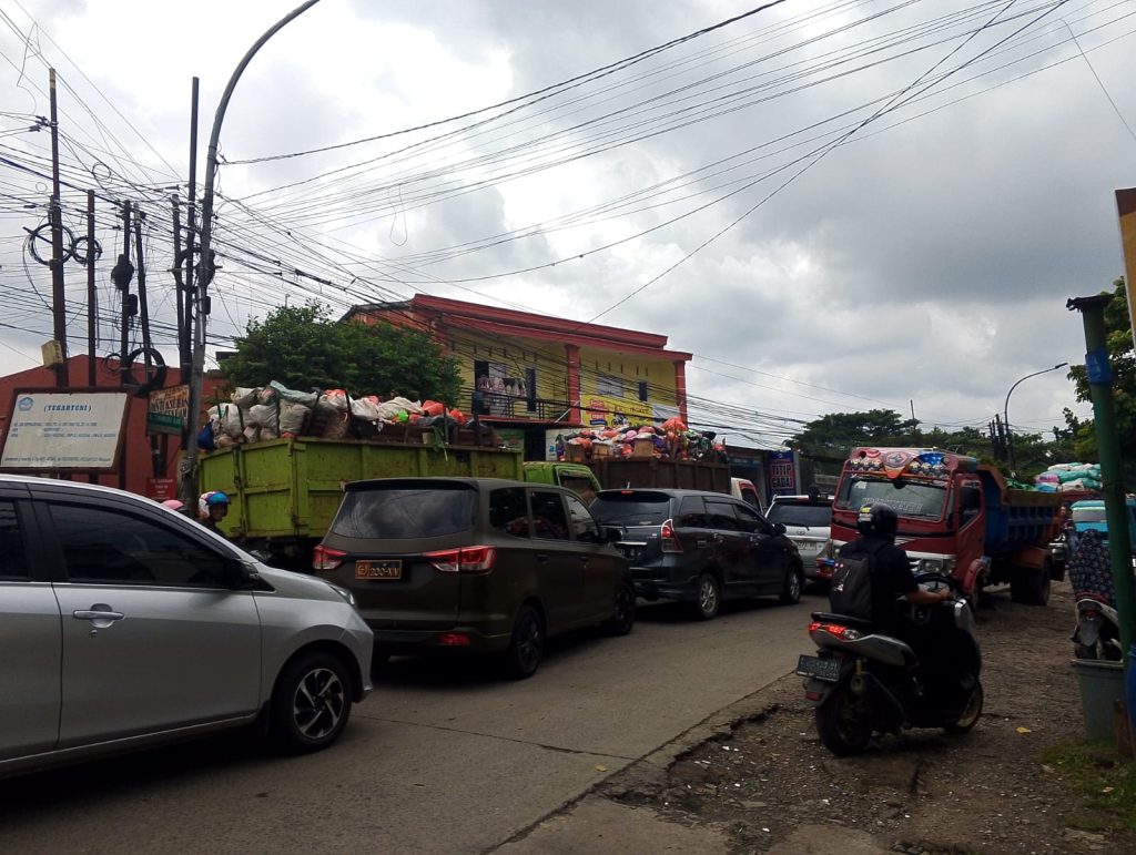 Kemacetan tersebut disebabkan juga karena padatnya kendaraan umum yang melintas di jalur poros tersebut, dan ditambah lagi , banyaknya truk pengangkut sampah yang antrean menunggu giliran masuk ke area TPA.