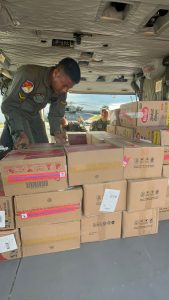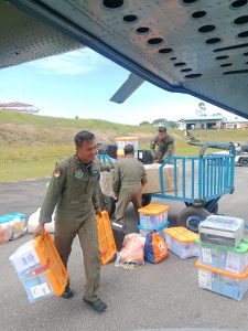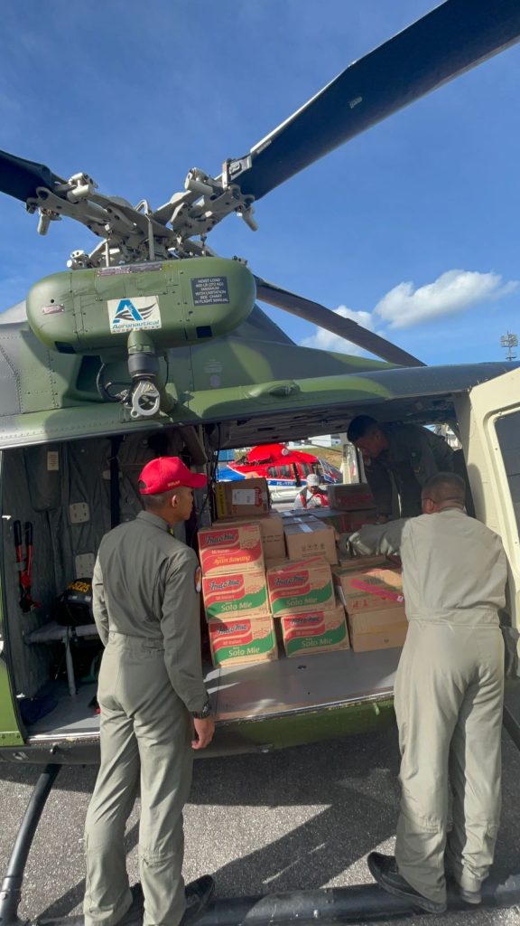 Menggunakan heli Mi-17 dan Bell 412, tim penerbang melaksanakan misi air dropping logistik berupa makanan siap saji, beras, mie instan, biskuit, dan kebutuhan pokok lainnya untuk masyarakat yang hingga hari ini masih terputus aksesnya. Kondisi medan dan cuaca yang tidak memungkinkan untuk pendaratan membuat distribusi dilakukan dengan teknik menjatuhkan bantuan dari udara secara terukur di titik yang telah ditentukan.