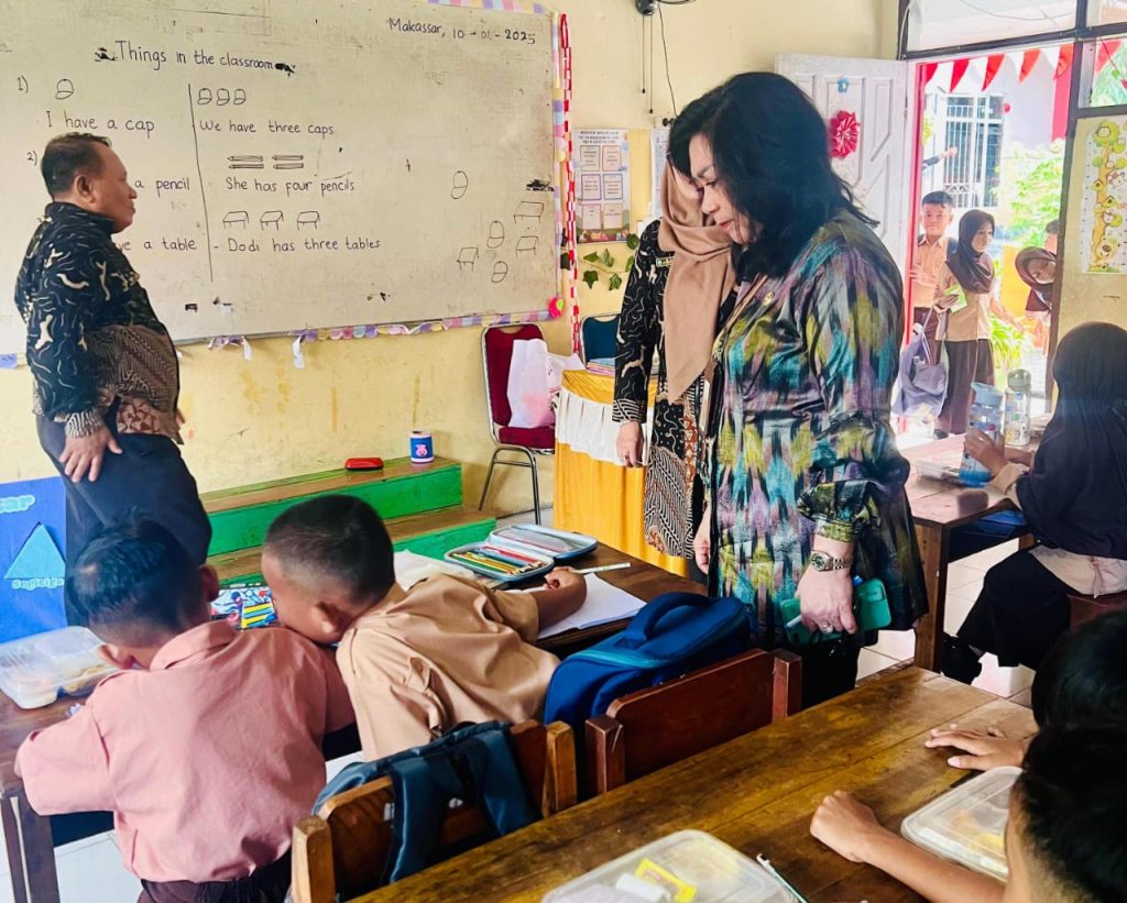 KARYAcelebes.com;Makassar, Jum’at 10/01/2025 – Untuk memastikan program Makanan Bergizi Gratis (MBG) berjalan sukses, Plt Kepala Dinas Pendidikan Kota Makassar, Nielma Palamba, turun langsung memantau distribusi di SD Negeri Cendrawasih pada Jumat, 10 Januari 2025. Program prioritas nasional yang diinisiasi Presiden Prabowo Subianto ini resmi dimulai serentak pada 6 Januari 2025, dengan harapan meningkatkan gizi dan kesehatan pelajar.