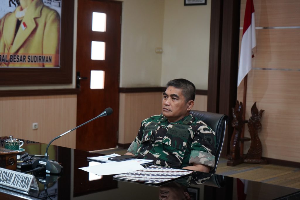 Kepala Staf Kodam (Kasdam) XIV/Hasanuddin Brigjen TNI Sugeng Hartono, S.E., M.M., mengikuti Rapat Lanjutan Evaluasi Percepatan Pembangunan Koperasi Desa/Kelurahan Merah Putih, yang dipimpin Kepala Staf Teritorial (Kaster) TNI Angkatan Darat Letjen TNI Bambang Trisnohadi melalui video conference, bertempat di Ruang Vicon Puskodalops Makodam, Jl. Urip Sumoharjo, Kota Makassar. Selasa (28/4/2026).