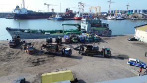 Pangdam I/Bukit Barisan Mayjen TNI Hendy Antariksa kembali meninjau kedatangan bantuan dari Kepala Staf Angkatan Darat (Kasad) Jenderal TNI Maruli Simanjuntak yang diangkut menggunakan Kapal ADRI LXVIII di Dermaga 202 Ujung Baru, Pelabuhan Belawan, Medan, Minggu (18/1/2026).