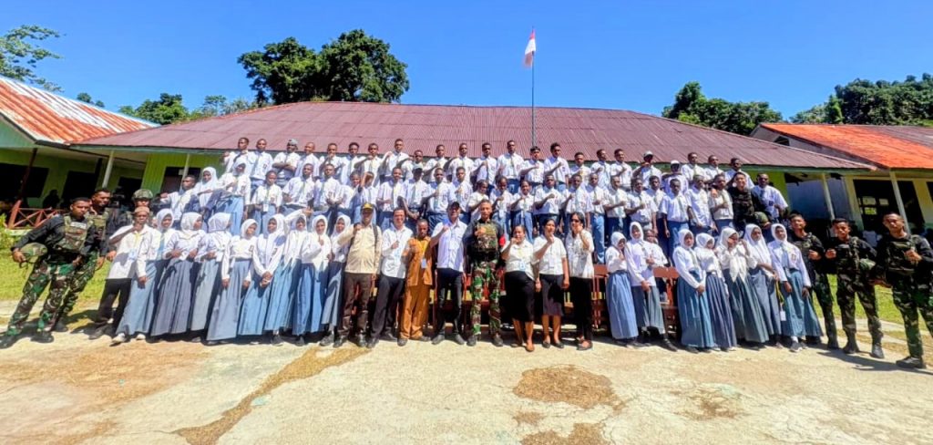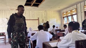 Satgas Pamtas RI–PNG Yonif 763/SBA Pos Kokoda melaksanakan kegiatan pengamanan Ujian Sekolah di SMA Negeri Kokoda sebagai bentuk dukungan terhadap kelancaran proses pendidikan di Daerah Papua. (22/4/2026).