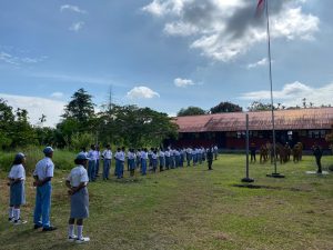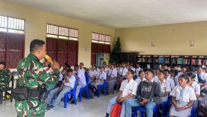 Dalam rangka menumbuhkan Jiwa Nasionalisme dan Rasa Cinta Tanah Air, Satgas Yonif 643/Wns Berikan Sosialisasi Wawasan Kebangsaan dan Bela Negara di SMA N 4 Arso, Distrik Arso, Kab. Keerom, Prov. Papua, Senin, (19/1/2026).