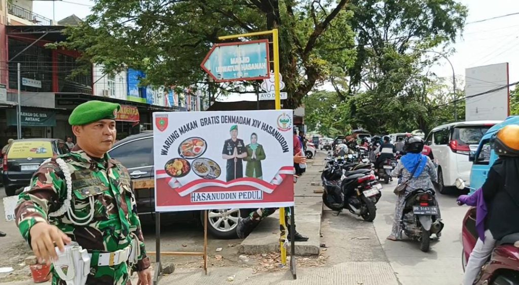 Makassar – Di tengah hiruk-pikuk kehidupan kota, ada secercah harapan yang hadir dalam bentuk sederhana: sepiring makanan hangat dan senyuman tulus dari para prajurit. Jumat (23/5/2025), Kodam XIV/Hasanuddin kembali menebar semangat kemanusiaan lewat program “Hasanuddin Peduli” dengan menghadirkan warung makan gratis di Jalan Antang Raya, Makassar.